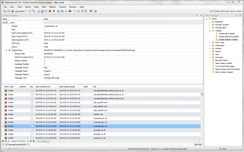 NetAnalysis® was designed specifically for web browser forensics and supports all the major desktop browsers (mobile browser support coming soon). It supports the analysis of history, cache, cookies and other aretefacts; it has powerful reporting capabilities to allow you to quickly produce evidence relating to user activity. The software also has powerful analytical tools to help you decode and understand the data.Filtering and Searching