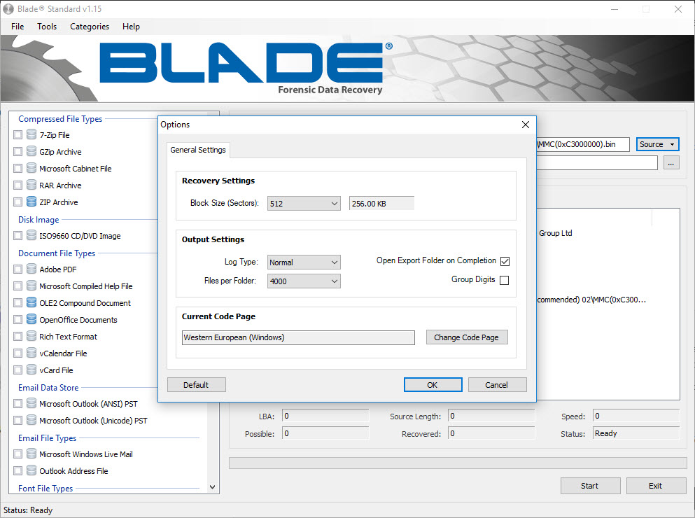 Blade® is a Windows-based forensic application which has been designed for advanced data carving and bespoke data recovery. It has been designed to process a forensic image, physical/logical disk, mobile phone or binary dump at sector level using a process called data carving. Data carving (or raw recovery) is the process of extracting data from a source without the assistance of the file system that created the original file.